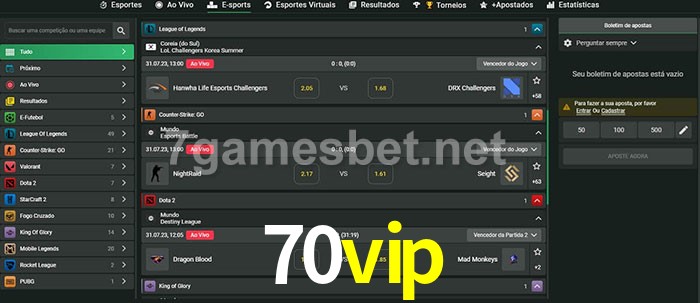 A aposta 70vip oferece aos jogadores a experiência mais conveniente de apostas em eSports!